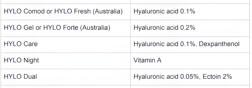 I used to really like the Hylo drops. I still think these are wonderful eye drops, particularly in treating aqueous-deficient dry eyes. However, in my research for these blogs, I found that using a combination of ingredients, like HP-Guar and Hyaluronic acid (Systane Hydration) or PEG 400 and Hyaluronic acid (Blink Intensive), may be more effective than any one ingredient on its own. A meta-analysis done in 2025 found that drops that contain hyaluronic acid significantly improved tear production but were similar in other aspects, like reducing corneal damage. For patients with evaporative dry eyes, I still think a lipid-based eye drop like NovaTears or Systane Complete is more suitable.